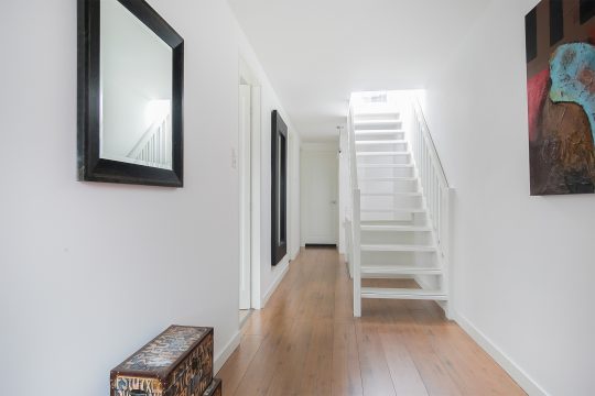 Toegang via het open portiek, trap naar de 1e verdieping en voordeur.