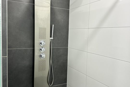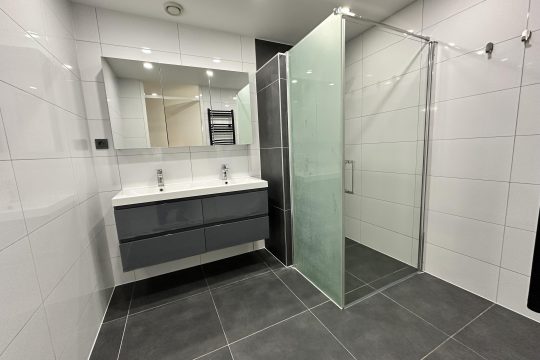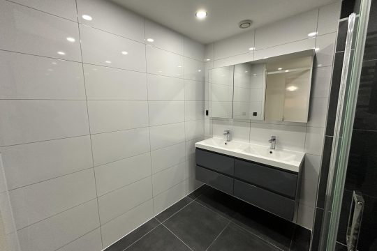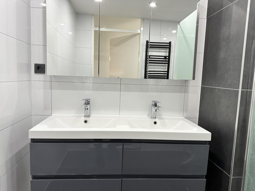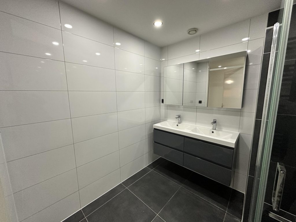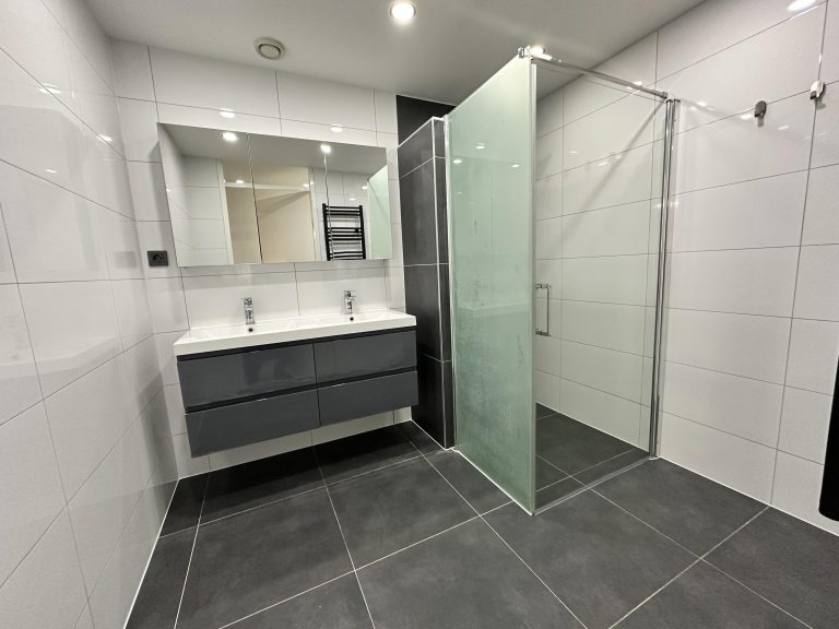 • Luxe badkamer – Voorzien van een dubbele wastafel en een ruime inloopdouche.