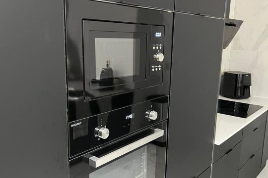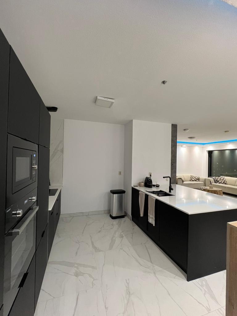 Kitchen: luxury open kitchen with bar and built-in appliances