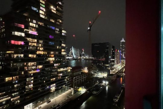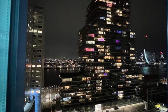 Op de 15e verdieping van de iconische Red Apple toren vindt u dit stijlvol afgewerkte 3-kamerappartement (104 m²) met een spectaculair uitzicht over de Erasmusbrug, de Maas, het Noordereiland en De Kuip.