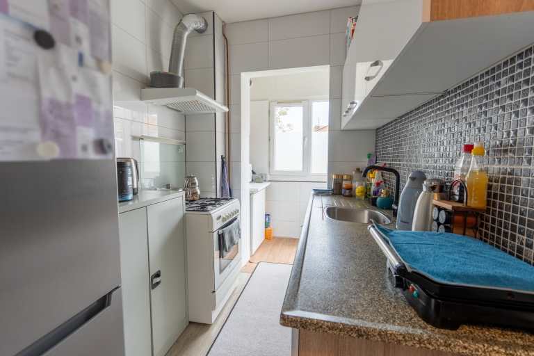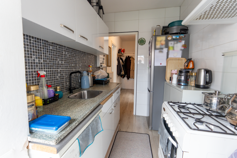 • Keuken in eenvoudige opstelling met toegang tot het balkon en cv-opstelplaats (Intergas, bj. 2008).