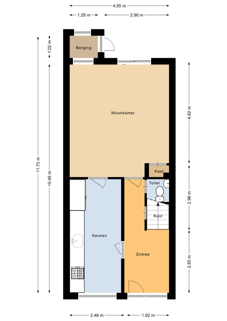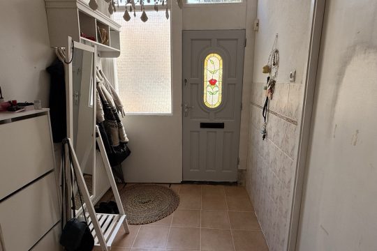 Je komt binnen via een lichte hal met toegang tot de ruime woonkamer met half open keuken en een separate wc in de hal. De begane grond biedt volop mogelijkheden voor wie graag een eigen stempel wil drukken, denk aan het creëren van een open leefruimte met moderne keuken.