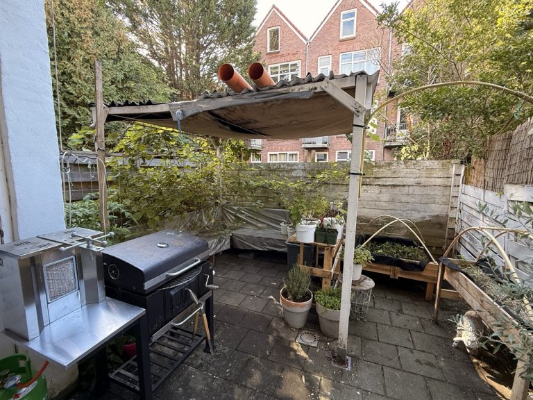Aan de achterzijde ligt een fijne stadstuin, perfect voor zomerse avonden of een kop koffie in de ochtendzon.