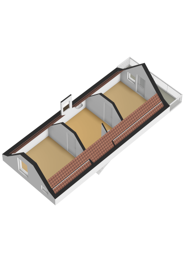 De zolderverdieping is verrassend ruim en beschikt over nog twee slaapkamers, een extra tussenkamer (bijvoorbeeld ideaal als werkplek, inloopkast of hobbyruimte) én een balkon aan de achterzijde. Dankzij de dakramen komt er veel natuurlijk licht binnen. Op deze verdieping bevindt zich tevens de centrale verwarmingsinstallatie.