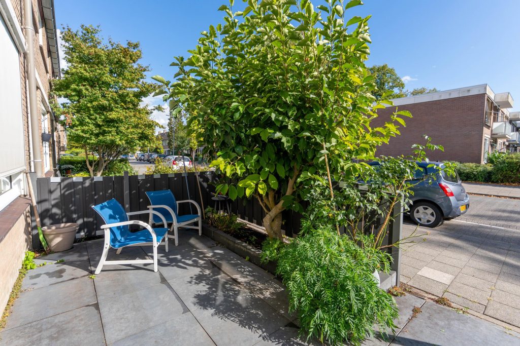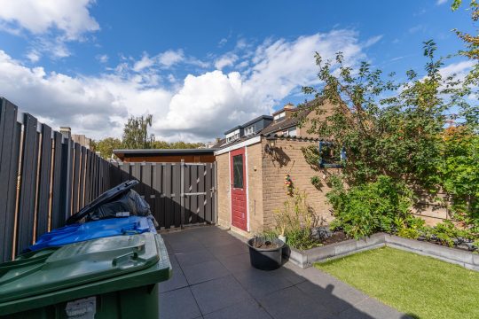 De achtertuin is gelegen op het noordwesten (ruim 10×5,75m) waar je
