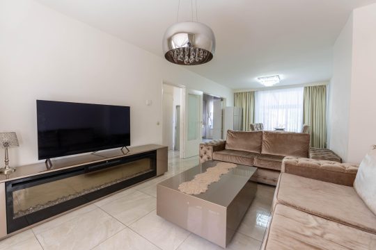 De ruime living (30 m²) beschikt over veel lichtinval en is voorzien van vloerverwarming.